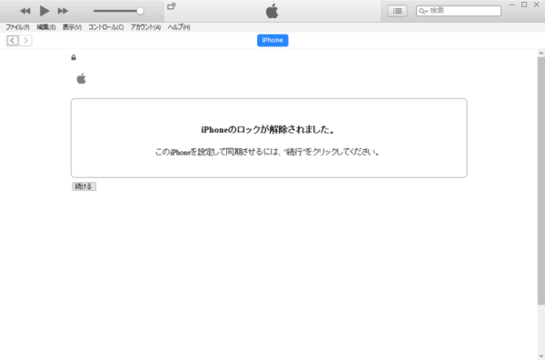 そのあと、iTunesの画面には、「新しいiPhoneへようこそ」という画面で「このバックアップから復元」画面が出てきますので、そのまま「続ける」でiPhoneのリストアをします。