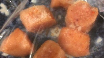 私の場合は、食べやすい大きさに明太子を切って冷凍します。便利です^^