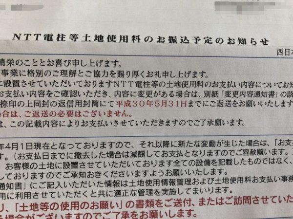 以上、NTTからの電柱等土地使用料でした
