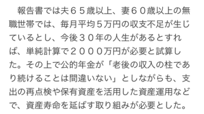 これを信じると確かに2,000万円ほど老後の貯蓄が欲しくなるわけです。