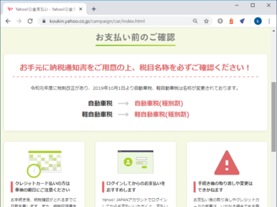 今年、自動車税を「yahoo!公金支払い」でクレジットカード払いの納税を使用としたところ、昨年と違っていて戸惑った部分がありました。
